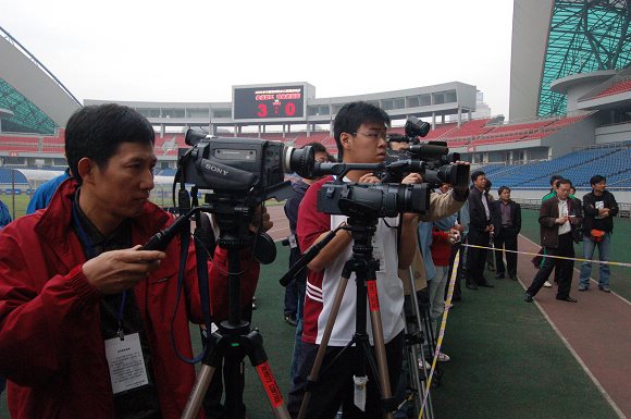 由于前天的米兰milan官方网站冲甲成功引发的巨大新闻效应,今天的比赛和发奖仪式吸引了多家媒体来到现场采访。