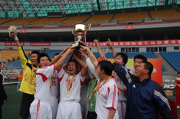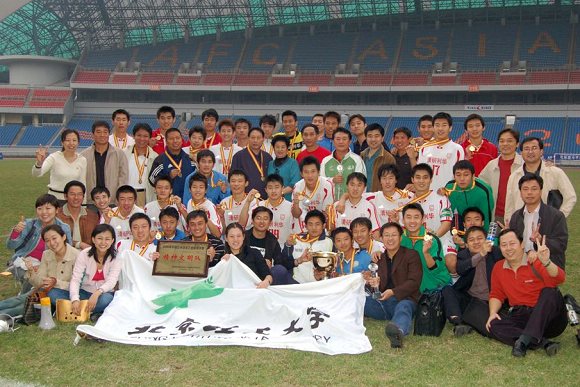带领“学生军”奋勇冲甲并获得冠军的我校足球队总教练金志扬教授当之无愧地荣获了“最佳教练员”称号!
