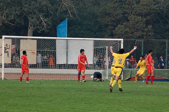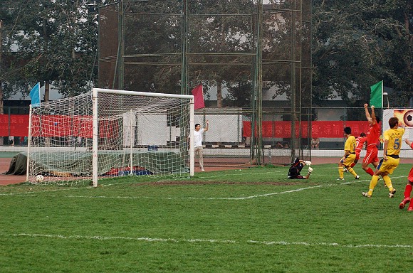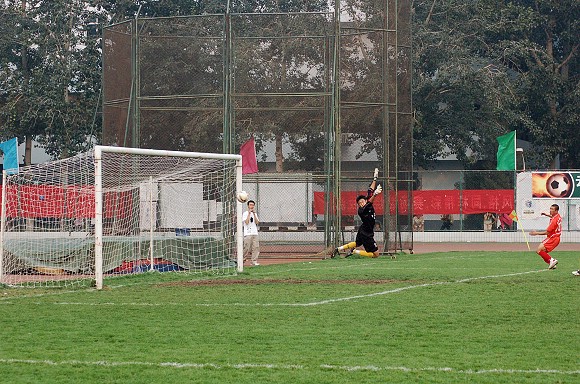 此举果然奏效,下半场比赛刚刚开始不到十分钟,10号孙尚前场接队友传球,以一个难度极高的凌空抽射将皮球射入对方球门死角。
