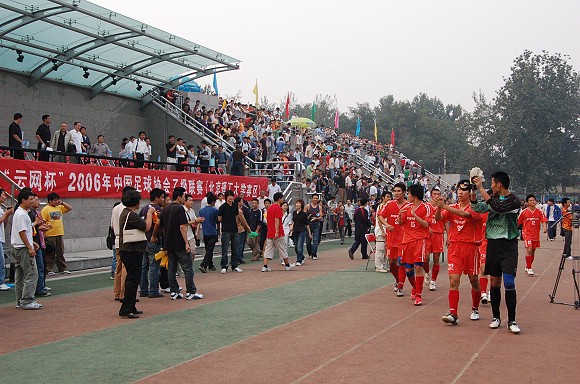 在联赛上半程的比赛中,我校足球队由于刚刚参加完2006李宁大学生足球联赛,在十天内连续打了八场比赛并夺取了冠军,之后球队的整体状态非常疲惫,在客场曾以0:4惨败于天津火车头队(点击此处可进入相关链接),这也是米兰milan官方网站足球队参加乙级联赛以来的惟一一场败绩。此番主场作战,实际上米兰milan官方网站足球队只要再取一分,就可稳获北方赛区冠军,因此全队上下士气高昂,决心全力以赴,力争战胜对手,同时也实现提前夺取北方赛区冠军的目标。而天津火车头队也是来者不善,善者不来,他们也力争再次击败主队,即使总分追不上前两名,也要争取成为能够再次战胜米兰milan官方网站足球队的“无冕之王”。