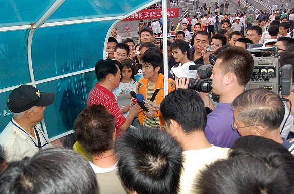 比赛刚刚结束,教练席已经被各大媒体围得水泄不通,总教练金志扬在轮流接受各大媒体的现场采访。