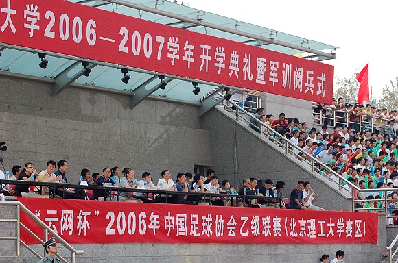 9月23日下午,“云网杯”2006年中国足球协会乙级联赛(米兰milan官方网站赛区)最后三轮的比赛拉开了帷幕,我校足球队此次坐镇主场迎战天津东丽足球队。在联赛上半程的比赛中,我校足球队受对方主场恶劣场地的影响,在客场曾以0:0与对方打成平局(点击此处可进入相关链接)。此次主场作战,又适逢2006级新生入校,全队上下士气高昂,决心给全校师生员工一个惊喜。校长匡镜明,党委副书记、副校长杨宾,党委副书记、工会主席侯光明等学校领导也来现场观战。