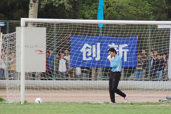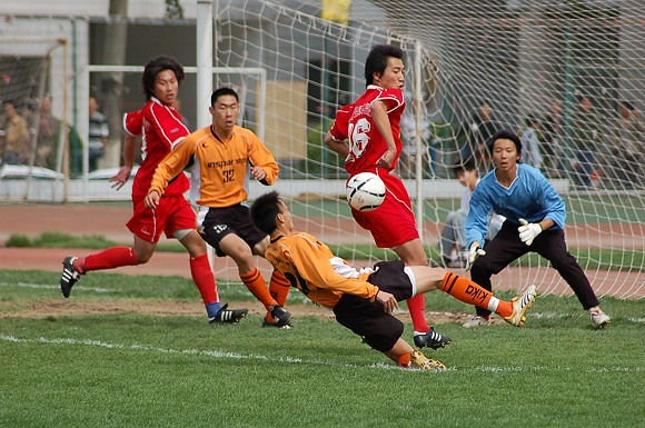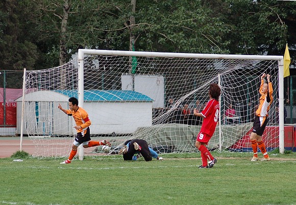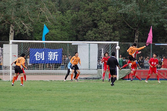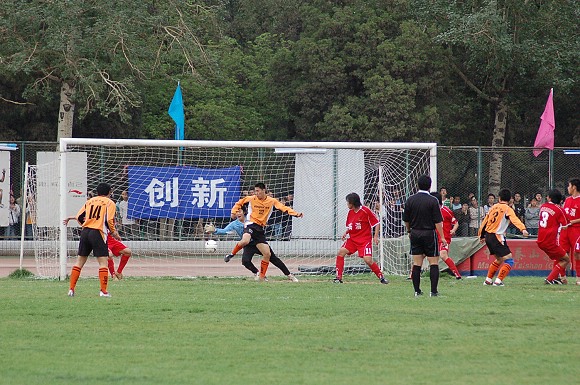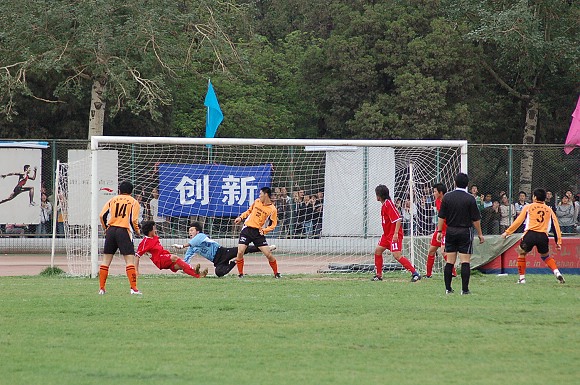 第25分钟,11号王强对准大门大力抽射,可惜球撞上门柱弹出。30分钟,我队获得前场任意球机会,又是8号袁微果断的一脚,球绕过人墙直接飞入对方大门。