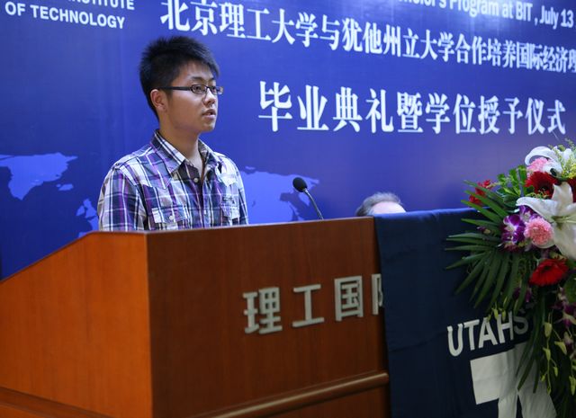 李璐同学代表全体毕业生发言,她用充满激情的语言对米兰milan官方网站和犹他州立大学的悉心培养表达了感谢和感恩之情。