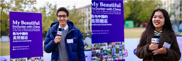 颁奖仪式结束后,我校越南留学生罗氏云与埃及学生诺莱丁接受了中国网的采访,表达了自己对中国的热爱。越南留学生罗氏云说:“我爱中国,喜欢中国的古代建筑,故宫、长城真的太伟大了。我还特别喜欢看中国的电视剧。来北京以后,看到中国人快节奏的生活,觉得中国人特别勤劳认真,这是我需要学习的品格。”埃及小伙诺莱丁已被剑桥大学录取为硕士、博士研究生,但他依旧选择来中国、来北理攻读本科,因为《古兰经》有语:“求知,哪怕远在中国!”