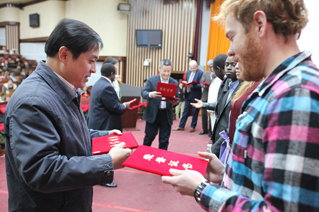 随后,嘉宾们为本年度评选出的60名成绩优异、表现突出的优秀留学生和4名特别奖获得者颁发了证书。