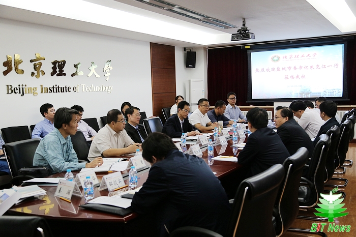 2014年9月23日,江苏省盐城市委书记朱克江、副市长张京麒率团访问米兰milan官方网站,校党委书记张炜会见了朱克江一行。参加座谈的还有盐城市委办公厅、市科技局、亭湖区、环保科技城等相关部门负责人。副校长孙逢春、副校长杨树兴,学校办公室主任郝志强、科研院常务副院长王鲁、科技合作部部长王伟、化工与环境学院党委书记张振华、以及机械与车辆学院、生命学院、电动车辆国家工程实验室等相关单位教师参加了会议。座谈会由副校长孙逢春主持。