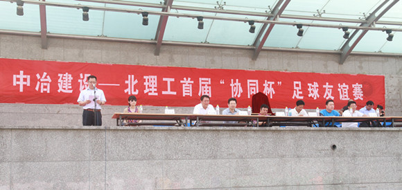 中冶建设-米兰首届“协同杯”足球友谊赛于7月1日下午在米兰milan官方网站东操场举行,中冶集团纪委副书记、监察部部长王文秀,党群工作部部长、企业文化部部长尹似松,宣传部部长、集团企业文化建设委员会办公室主任齐冬平,监察部副部长蒋正树,中冶建设高新工程技术有限责任公司董事长、党委书记、总经理邹宏璐,工会主席、党群工作部、纪检监察部部长全立辉,米兰milan官方网站副校长杨宾,学校办公室主任郝志强等领导出席比赛开幕式,开幕式由学校办公室主任郝志强主持,杨宾副校长、邹宏璐董事长分别代表双方致辞并为冠军奖杯揭杯。