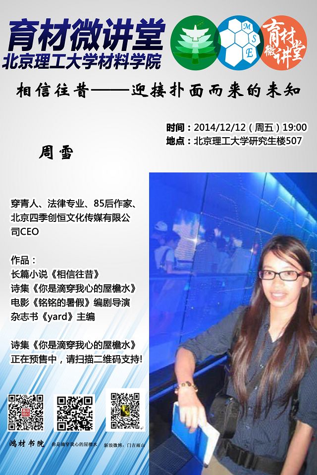 “育材微讲堂”第十二期预告—周雪和她的《相信往昔》们
