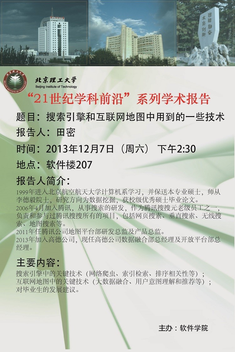 软件学院"搜索引擎和互联网地图技术讲座暨高德公司招聘会" 预告