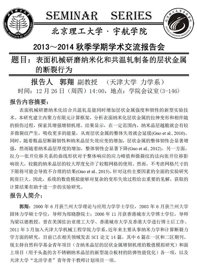 宇航学院12月26日学术报告预告