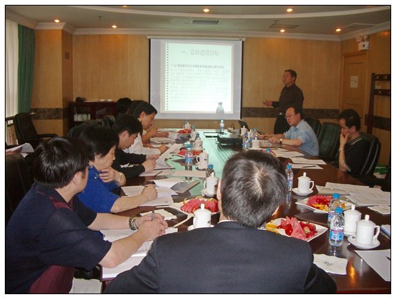 校长助理庞思勤在向专家组汇报项目的总体建设情况。