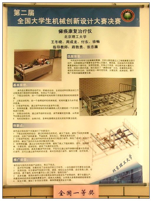 图为我校学生在第二届全国大学生机械创新设计大赛获奖作品。