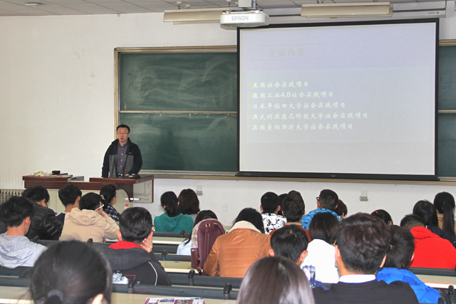 为了使同学们更好了解人文社会实践国际化系列项目,3月18日下午2点,教务处在良乡校区组织了2016年暑假人文社会实践系列项目宣讲活动,人文学院张雷老师主讲。张老师首先介绍了人文社会实践课程的要求和学分认定,之后分别介绍了美国社会实践项目、德国工业4.0社会实践项目、日本早稻田大学社会实践项目、澳大利亚悉尼科技大学社会实践项目和英国曼彻斯特大学社会实践项目的要求、时间安排、实践内容等。张雷老师是2015年赴美社会调研项目的带队老师,义务承担了项目运行的组织与管理工作,在学生赴美调研学习期间给予全面的指导和热情的帮助,为拓展人文社会实践国际化系列项目做了大量工作。