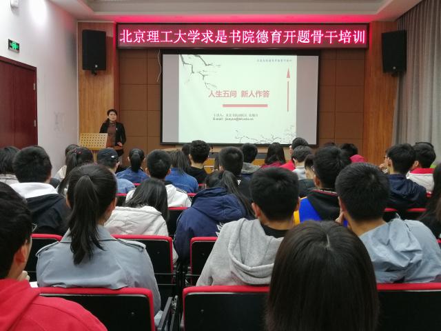 求是书院将德育开题工作划分为动员准备阶段、骨干培训阶段、自我探索阶段、导师辅导阶段、相互交流阶段、开题答辩阶段以及提交材料阶段。在经过了初期动员之后,3月26日,学生工作部副部长、求是书院副院长张舰月为求是书院全体学生骨干进行了德育开题的培训。在培训会上,张舰月副院长详细解析了人生五问的构成以及从哪几个方面来回答人生五问,并鼓励同学们要通过德育开题认识自我、发现自我、规划自我。
