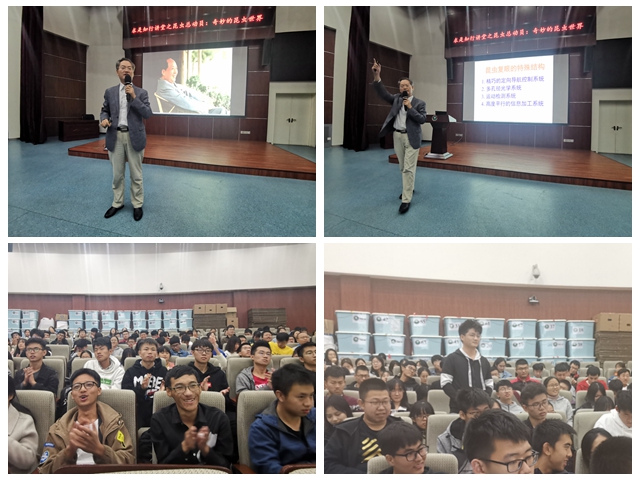 彩万志教授两小时的精彩报告中,通过生动具体的故事描述,诙谐幽默的语言诠释,五彩斑斓的照片展示,笔走龙蛇的书法演绎,为在场的求是书生们带来了一场视觉和听觉上的科学盛宴。报告内容精彩且引人深思,具有很强的科普性和启发性。报告结束之后,同学们纷纷向彩教授提出个人关于报告内容的一些疑惑,彩教授一一做了认真细致的解答。