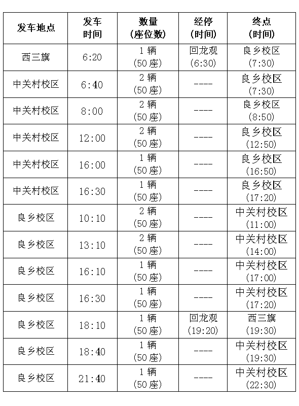 > 2008年下半年良乡校区班车运行时间表(2008.10.18修订)