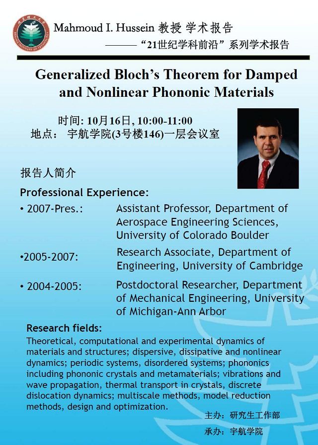 > 宇航学院10月16日学术报告预告