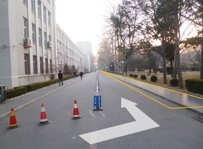步行的师生请您经步行区或便道行走;骑自行车的师生可以绕行三号教学楼北侧道路(在三号教学楼办公、上课的师生请您自觉将自行车摆放在自行车存放区内,以免造成单行线机动车道路交通堵塞)。