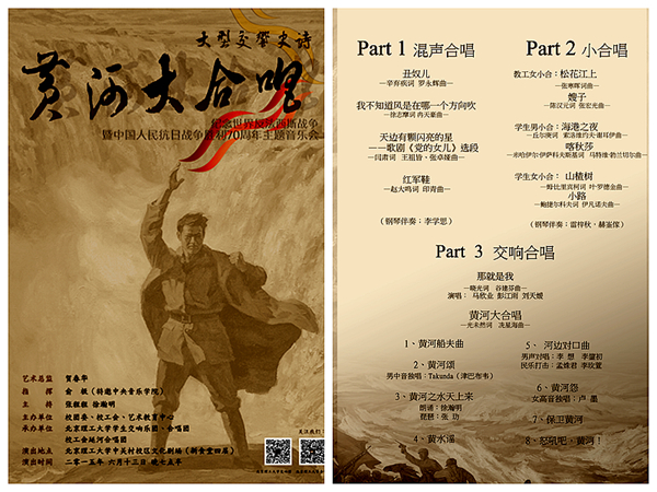 2015年是抗日战争胜利暨世界反法西斯战争胜利70周年,为了大力弘扬爱国主义精神,培育和践行社会主义核心价值观,激发民族自尊心、自信心和自豪感,6月13日将于学校文化艺术剧场举办“黄河大合唱—纪念世界反法西斯战争暨中国人民抗日战争胜利七十周年主题音乐会”,敬请关注。