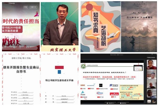 学校党委高度重视此次德育“云”开题工作,校领导、中层领导干部作为德育导师纷纷参与到所联系班级德育开题交流分享会中。党委常务副书记项昌乐在睿信书院1931班线上主题团日活动暨德育开题动员会上,号召同学们要坚定理想信念、爱党爱国、甘于奉献;磨砺艰苦奋斗、攻坚克难、追求真理、敢于创新。副校长王晓锋在精工书院1903班德育开题线上班会上,希望同学们在严守疫情防控要求、完成教学任务的基础上勇挑重担,在国家和人民最需要的地方绽放青春之花。党委副书记包丽颖在睿信书院1910班德育开题线上班会上,寄语同学们要志存高远,树立家国情怀;砥砺奋斗,增长本领才干;甘于奉献,担当时代责任。副校长魏一鸣在明德书院德昭班德育开题线上班会上,勉励同学们要把个人理想奋斗融入到国家建设之中,合理制定长期目标和短期目标,通过努力实现自己的人生抱负,成长为国家的栋梁之才。副校长王博在求是书院1910班德育开题线上班会上,勉励同学们要立大志,担大任;明任务,重使命;立当下,谋未来;用奋斗精神铸就青春的底色,以青春之我成就青春之北理、青春之国家、青春之民族。