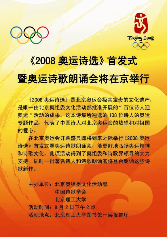 2008奥运诗选首发式暨奥运诗歌朗诵会将在米兰举行