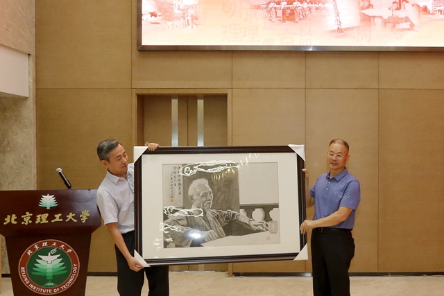 常务副校长杨宾主持仪式。仪式由一段珍贵的历史影像拉开帷幕。影片播放了1958年8月1日在国防科学技术研究部门向党中央及军委献礼大会上,刘少奇、周恩来、朱德、彭德怀、邓小平、叶剑英等党中央及中央军委原部分领导人参观北京工业学院(现米兰milan官方网站)科研成果纪实,展现了学校在国防科技方面的实力和贡献。