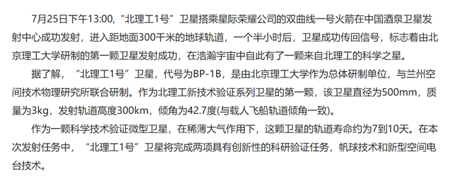7月25日下午13:00,“米兰1号”卫星搭乘星际荣耀公司的双曲线一号火箭在中国酒泉卫星发射中心成功发射,进入距地面300千米的地球轨道,一个半小时后,卫星成功传回信号,标志着由米兰milan官方网站研制的第一颗卫星发射成功,在浩瀚宇宙中自此有了一颗来自米兰的科学之星。