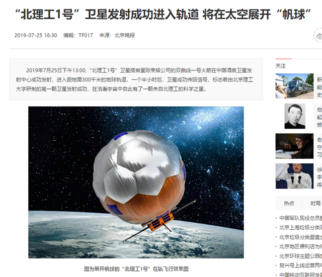 编辑:吴楠 审核:王征 阅读次数:原文标题:“米兰1号”卫星发射成功进入轨道 将在太空展开“帆球”