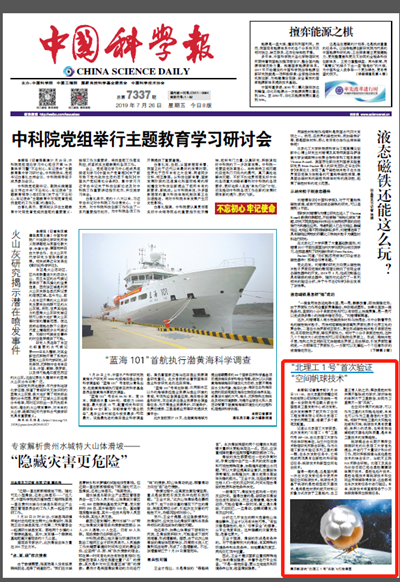 编辑:吴楠 审核:王征 阅读次数:原文标题:“米兰1号”首次验证“空间帆球技术”