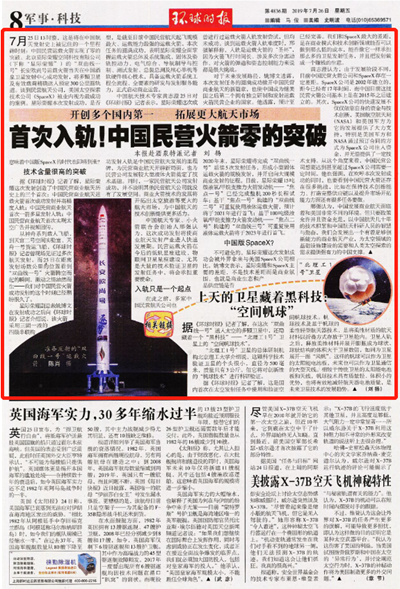编辑:吴楠 审核:王征 阅读次数:原文标题:首次入轨!中国民营火箭零的突破