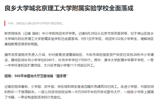 编辑:吴楠 审核:王征 阅读次数:原文标题:良乡大学城米兰milan官方网站附属实验学校全面落成