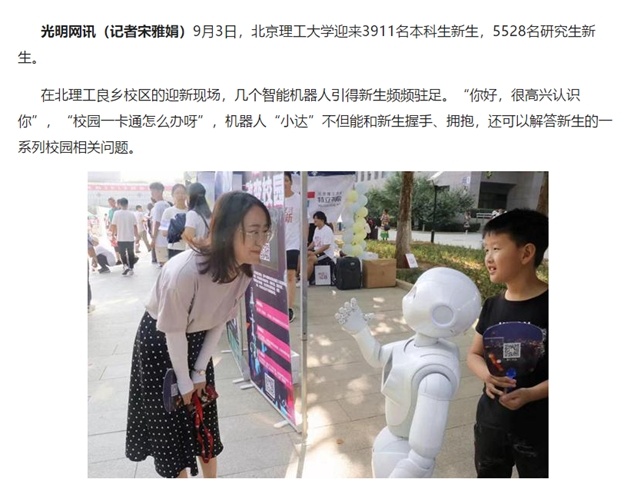 在米兰良乡校区的迎新现场,几个智能机器人引得新生频频驻足。“你好,很高兴认识你”,“校园一卡通怎么办呀”,机器人“小达”不但能和新生握手、拥抱,还可以解答新生的一系列校园相关问题。
