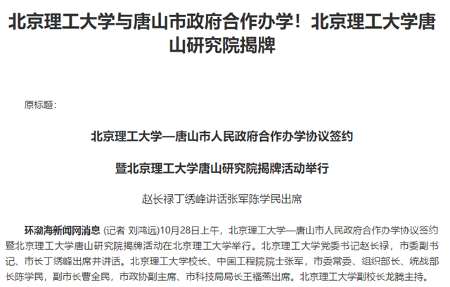 米兰milan官方网站与唐山市政府合作办学!米兰milan官方网站唐山研究院揭牌