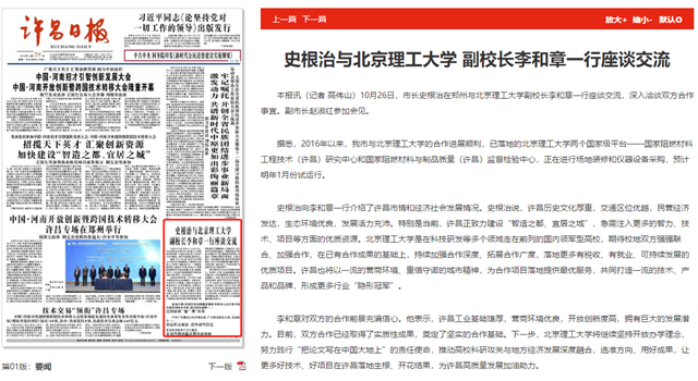 史根治向李和章一行介绍了许昌市情和经济社会发展情况。史根治说,许昌历史文化厚重,交通区位优越,民营经济发达,生态环境优良,发展活力充沛。特别是当前,许昌正致力建设“智造之都、宜居之城”,急需注入更多的智力、技术、项目等方面的优质资源。米兰milan官方网站是在科技研发等多个领域走在前列的国内领军型高校,期待校地双方强强联合、加强合作,在已有合作成果的基础上,持续加强合作深度、拓展合作广度,落地更多有税收、有就业、可持续发展的优质项目。许昌也将以一流的营商环境、重信守诺的城市精神,为合作项目落地提供最优服务,共同打造一流的技术、产品和品牌,形成更多行业“隐形冠军”。