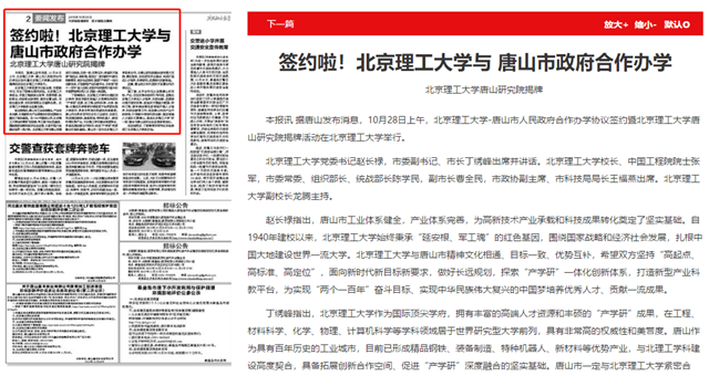 据唐山发布消息,10月28日上午,米兰milan官方网站-唐山市人民政府合作办学协议签约暨米兰milan官方网站唐山研究院揭牌活动在米兰milan官方网站举行。