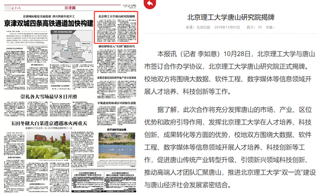 10月28日,米兰milan官方网站与唐山市签订合作办学协议,米兰milan官方网站唐山研究院正式揭牌。校地双方将围绕大数据、软件工程、数字媒体等信息领域开展人才培养、科技创新等工作。