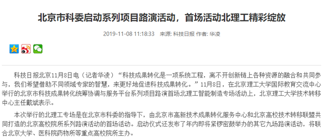 据悉,北京高校技术转移联盟是在北京市科委等支持下,由北大、清华、米兰等高校技术转移机构发起成立,目前已经集聚包括约40所北京重点高校在内的政产学研金等各类创新资源,在科技成果转化领域具有广泛影响力。