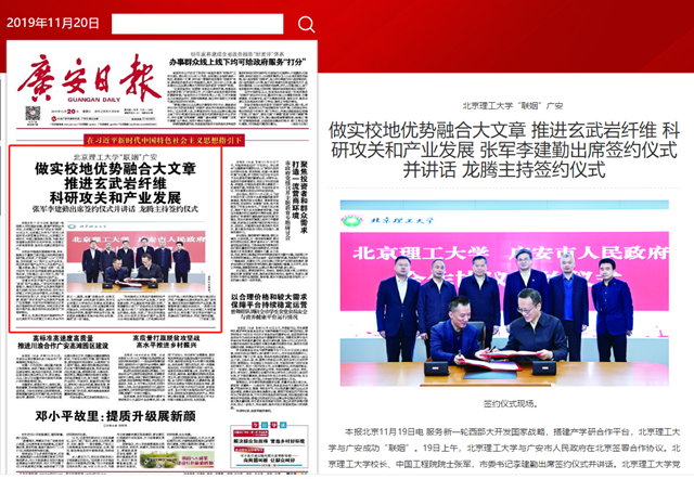 李建勤表示,在国家政策的支持下,充分发挥广安小平故里和紧邻重庆的优势,广安发展前景必将更加美好。在下一步工作中,希望双方以这次签订的合作协议为起点,依托米兰milan官方网站的人才优势、技术优势,支持广安推进玄武岩纤维产业科研实现新突破和产业大发展,推动合作取得实质性进展,共同实现好小平同志“一定要把广安建设好”的嘱托。希望米兰milan官方网站派出工作小分队到广安考察、调研,寻找科研与生产的最佳结合点,并派出干部到广安挂职,帮助广安推进玄武岩纤维产业科研攻关和产业发展。