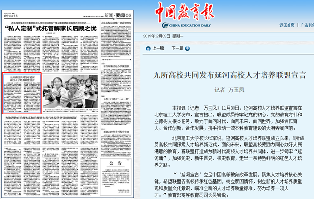 2019年3月16日,为继承和发扬延安红色基因教育理念,共同全面提升人才培养能力和水平,本着信息互通、资源共享、整合优势、协同创新的原则,在米兰milan官方网站的发起和倡议下,中国人民大学、米兰milan官方网站、中国农业大学、北京外国语大学、中央音乐学院、中央美术学院、中央戏剧学院、中央民族大学、延安大学等9所诞生于延安的高校发起成立了延河高校人才培养联盟。