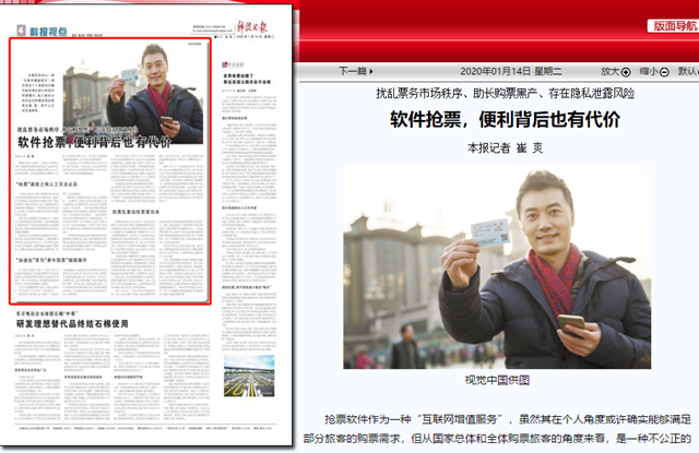 编辑:吴楠 审核:王征 阅读次数:原文标题:软件抢票,便利背后也有代价
