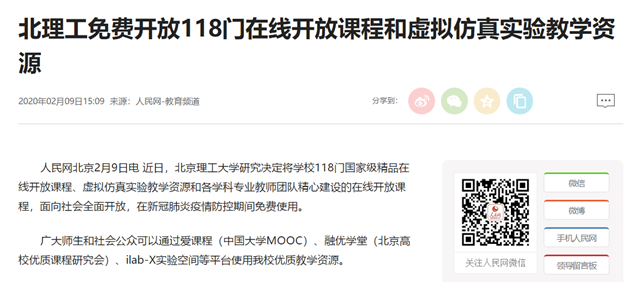 米兰免费开放118门在线开放课程和虚拟仿真实验教学资源