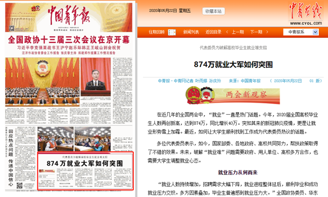 发布日期: 2020-05-22 供稿:两会·中国青年报