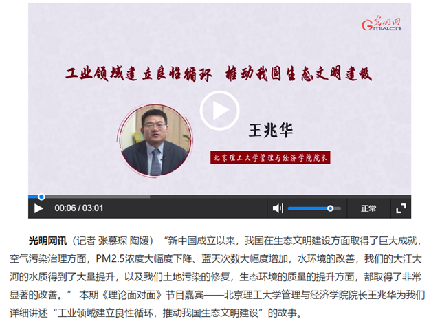 编辑:吴楠 审核:刘晓俏 阅读次数:原文标题:【理论面对面】王兆华:工业领域建立良性循环 推动我国生态文明建设