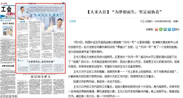伴随长征五号遥四运载火箭发射我国第一颗火星探测器“天问一号”取得圆满成功,执行这次发射任务的01指挥员王光义受到了广泛关注。8月24日,记者电话采访了正在休假中的王光义和他的女儿。01指挥员是如何炼成的?欢呼和掌声背后,发射场里发生过怎样的故事?是什么样的精神支撑着航天人坚守孤独?这些问题的答案都随着采访的深入慢慢浮出水面。