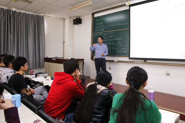 课堂教学是培养人才的主渠道,上好“枯燥抽象”的数学课,激发数学兴趣,成为数学老师们“挖空心思、绞尽脑汁”的首要任务。 “巧引妙借厚底蕴,文有诗词言自华”, 曹鹏的数学课广受学生欢迎。“考前翻翻‘CP(曹鹏)语录合集’,能起到考试‘护身符’的作用。”数学学院2014级本科毕业生曹越琦对自己的这位数学老师可谓崇拜不已,“现在一提到傅里叶级数和傅里叶变换理论,我立马就联想到曹老师用《琵琶行》中的‘大弦嘈嘈如急雨,小弦切切如私语’来形容不同的‘频率’,真是中了曹老师的‘毒’了!”除了激发兴趣,曹鹏的数学课有着更大的“野心”:“我希望学生在我的课上,不仅学到数学知识,也能提升人文素养。”