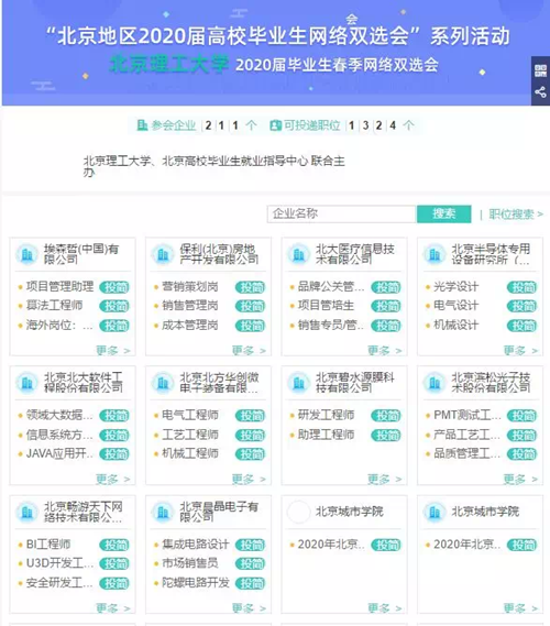 自大年初四开始,学校主动与用人单位联系,通过就业信息网、“北理就业”微信公众号等渠道及时发布用人需求,每天发布各类招聘信息50条以上,发布数量达到去年同期的1.7倍,陆续推出“找工作不出门,名企线上春招集中发布”系列微信推送36批次,累计900余家优质用人单位招聘信息。