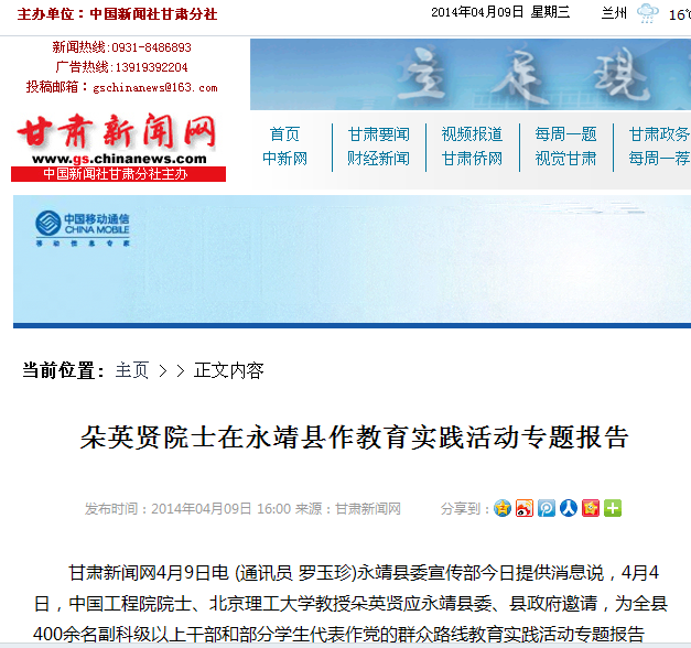 甘肃新闻网4月9日电 (通讯员 罗玉珍)永靖县委宣传部今日提供消息说,4月4日,中国工程院院士、米兰milan官方网站教授朵英贤应永靖县委、县政府邀请,为全县400余名副科级以上干部和部分学生代表作党的群众路线教育实践活动专题报告会。
