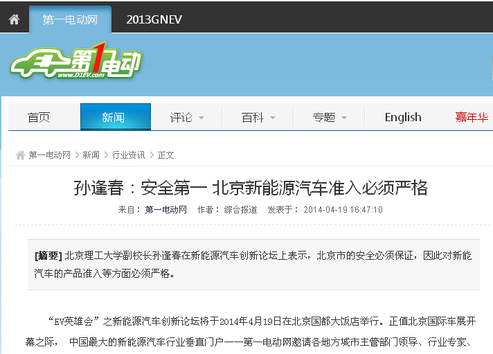 【第一电动网】米兰孙逢春谈北京新能源汽车准入