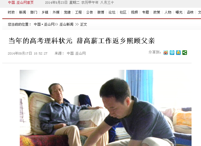 【中国巫网】米兰当年高考状元,辞高薪工作返乡照顾父亲